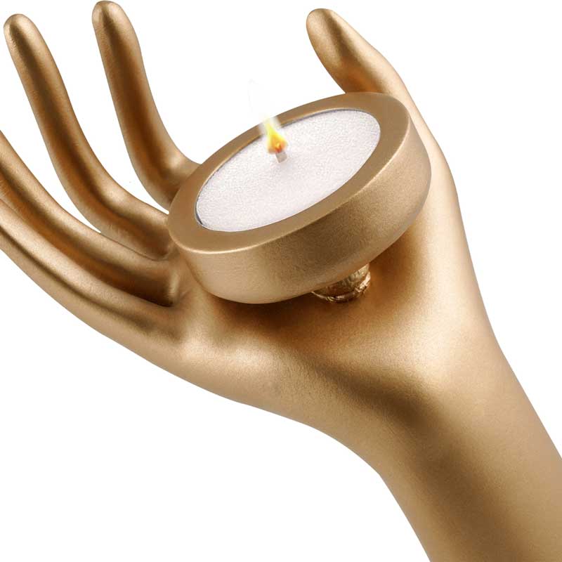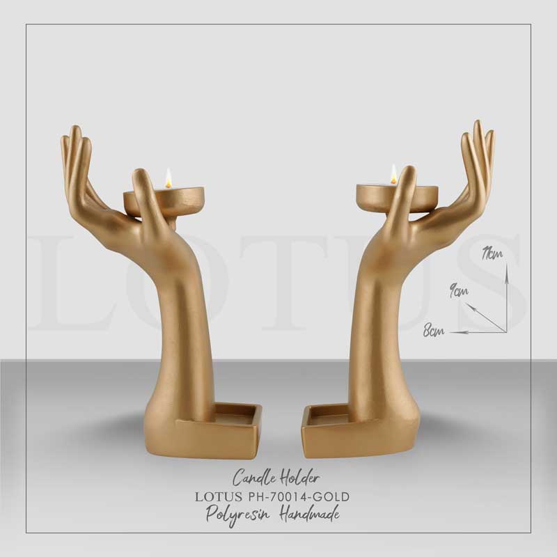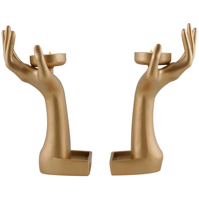این جا شمعی لوتوس با طرح دست،دکور شما را متحول می کند.ست دوتایی از جنس پلی رزین با رنگ طلایی خیره کننده.همین حالا گرما و هنر را به خانه خود بیاورید.