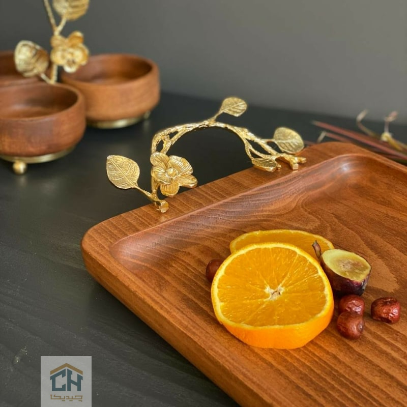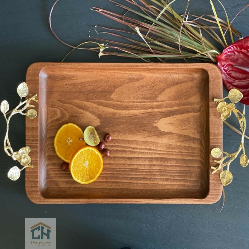 با سینی چوبی دسته برنجی طرح ارکیده،میزبانی خود را ارتقا دهید.انتخابی عالی برای سرو چای و مزه با طراحی لوکس و کیفیت ماندگار.