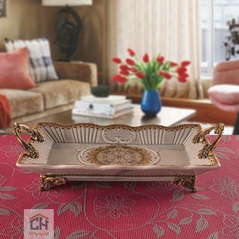 شیرینی خوری مدل GK7195-3،دارای کیفیت ساخت بالا و ثبات رنگ و لعاب بی نظیری است که تضمین کننده حفظ زیبایی آن در طول زمان خواهد بود.دسته های زیبای طلایی رنگ،به همراه پایه های زینک با طراحی هنرمندانه،جلوه ای سلطنتی به این ظرف شیرینی می بخشد.این شیرینی خوری دسته دار برای سرو انواع شیرینی،شکلات،میوه های خشک و تنقلات بسیار مناسب است و به شما امکان می دهد تا با ظرافت و شکوه از مهمانان خود پذیرایی کنید.