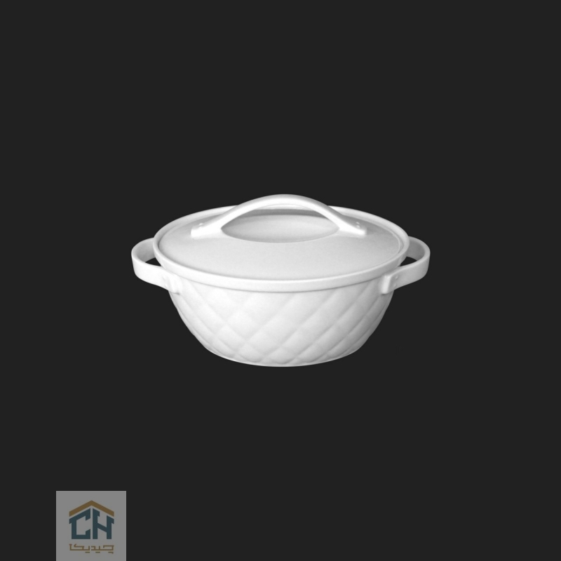 لحظه ای که این شاهکار را در دستان خود می گیرید،تفاوتی عمیق را حس خواهید کرد.این قابلمه،فراتر از یک ظرف معمولی،بیانیه ای از سلیقه و تجمل است.بدنه سرامیک سفید و درخشان آن که با الهام از طرح بری بری با نقوش لوزی شکل برجسته تزئین شده،هر نگاهی را به خود جلب می کند و حسی از اصالت و زیبایی را به فضای شما می بخشد.