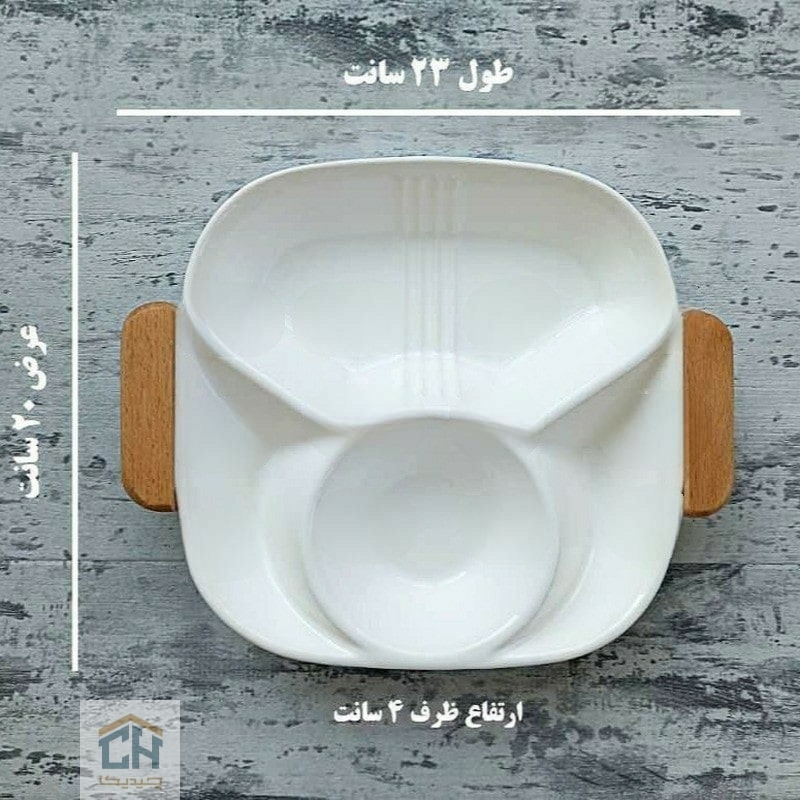 با اردو خوری سرامیکی دسته چوبی 4 قسمتی وینسم،میز صبحانه و عصرانه خود را متحول کنید.طراحی کاربردی ۴ خانه با کیفیت عالی و ظاهر لوکس برای میزبانی آسان.