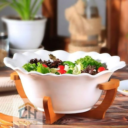 سالاد خوری سرامیکی پایه چوبی مدل 50027