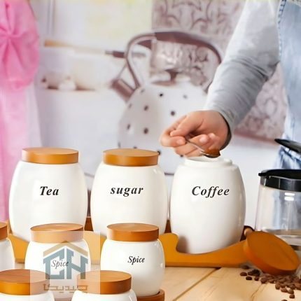 جا ادویه سرامیکی پایه چوبی ست 5 تایی مدل 50029S