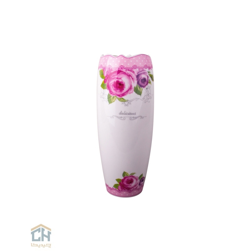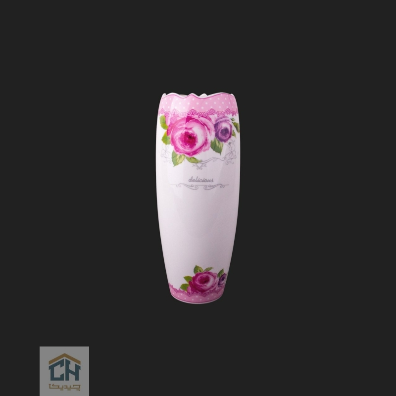 طرح دیکال این گلدان،مزین به نقوش چشم نواز گلهای رز صورتی و بنفش است که با برگ های سبزشان،تضادی زیبا با زمینه سفید براق سرامیک ایجاد می کنند.لبه های چین دار صورتی با نقطه های سفید،به همراه نوار تزئینی هماهنگ در قسمت پایینی،حسی از لطافت و نوستالژی را به بیننده منتقل می کند.در مرکز این اثر هنری،کلمه”delicious”با خطی ظریف نگاشته شده که بر شیرینی و دلپذیری طراحی می افزاید.این ترکیب رنگی شاداب و نقوش گلدار،تأثیر مثبتی بر فضا و حال و هوای خانه شما خواهد گذاشت و حسی از آرامش و طراوت را به ارمغان می آورد.
