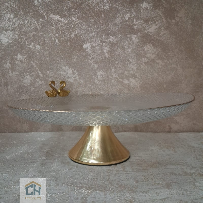 این شیرینی خوری بلور پایه دار با طراحی پیکسل،لبه های طلایی و مجسمه قو،راهکاری بی نظیر برای چیدمان چشم نواز انواع دسر در مهمانی های شماست.