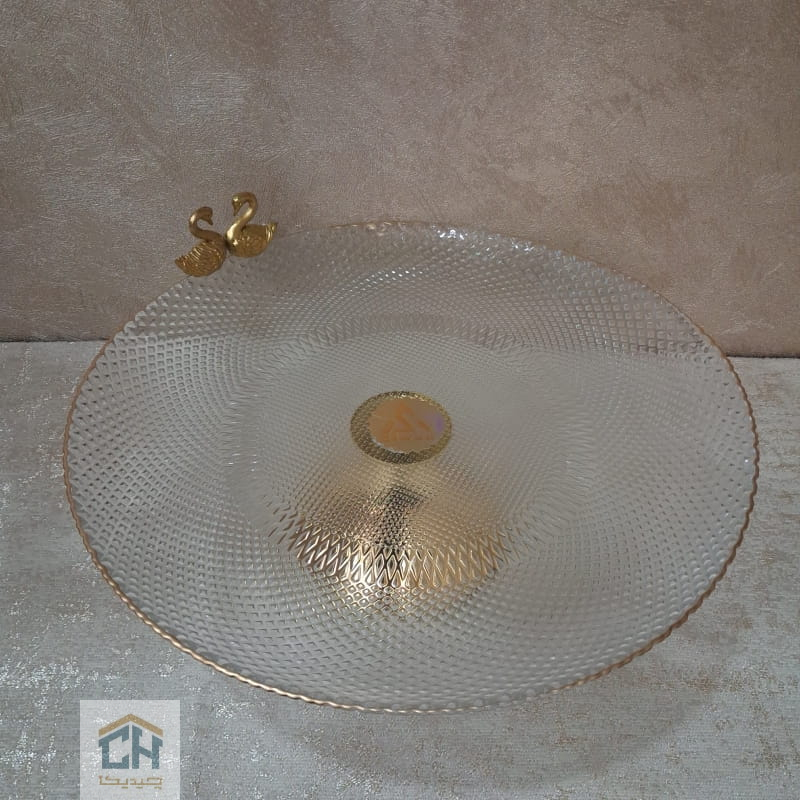 حضور دو مجسمه ظریف قو روی لبه این شیرینی خوری لب طلا،حسی از ظرافت و اصالت را به فضا می بخشد.پترن های برجسته بدنه،نور محیط را به زیبایی هر چه تمام تر منعکس کرده و جلوه ای تماشایی می سازند.این همان تکه گمشده ای است که دکوراسیون شما برای کامل شدن نیاز دارد؛همین حالا این اثر هنری را به جمع ظروف ارزشمند خود اضافه کنید.