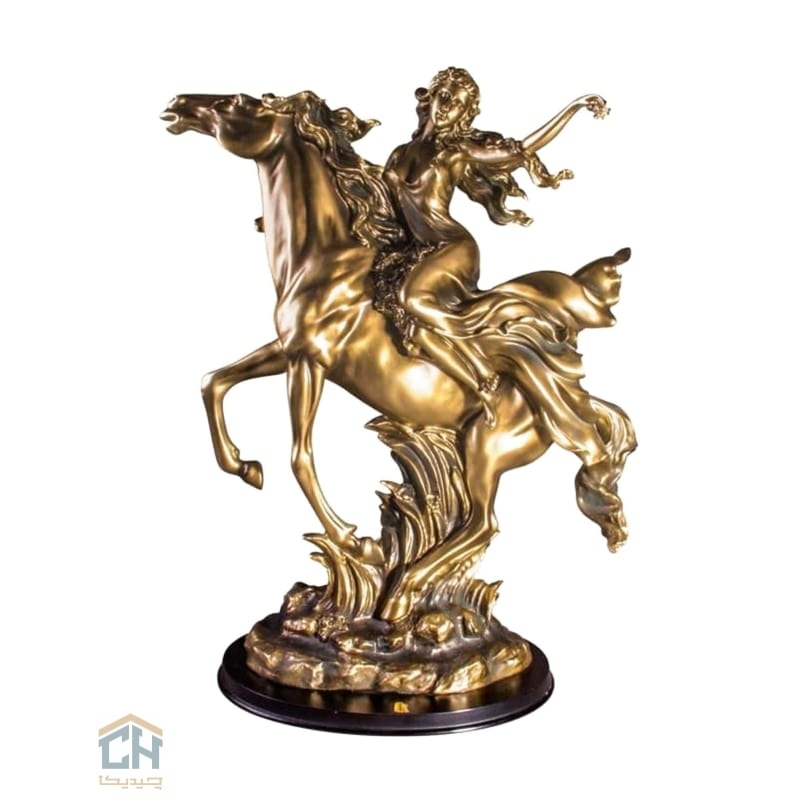 این تندیس زن اسب سوار با استفاده از بهترین متریال پلی رزین ساخته شده تا جزئیات دقیق،از موها و لباس مواج سوارکار گرفته تا عضلات قدرتمند اسب،با کیفیتی استثنایی به نمایش درآید.پوشش رنگی این مجسمه طرح برنز،با جلوه ای گرم و کلاسیک،زیبایی و عمق بصری آن را دو چندان کرده و ثبات رنگ بالای آن،ماندگاری این شاهکار را برای همیشه تضمین می کند.