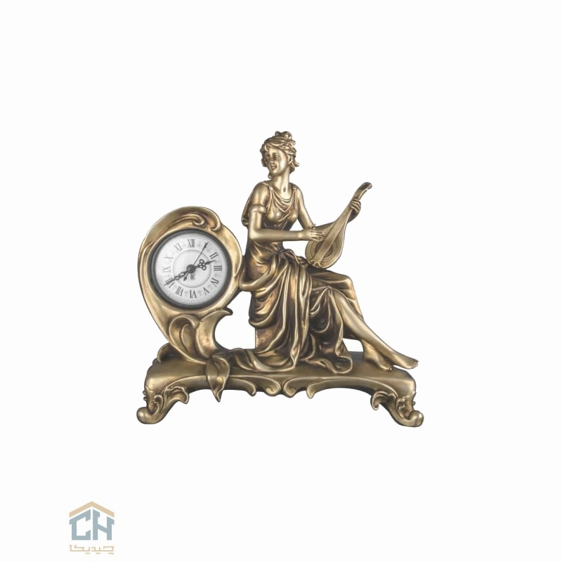 این اثر با استفاده از بهترین متریال پلی رزین ساخته شده تا جزئیات دقیق،از چین های ظریف لباس بانوی نوازنده گرفته تا ساز در دست او،با کیفیتی استثنایی به نمایش درآید.پوشش رنگی این مجسمه طرح برنز،با جلوه ای گرم و اصیل،به آن عمق و شخصیتی منحصر به فرد بخشیده است.این مجسمه گلدکیش یک ساعت رومیزی کلاسیک است که با صفحه دارای اعداد رومی،اصالت خود را تکمیل می کند.