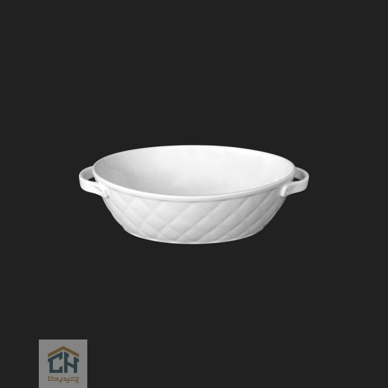 بدنه درخشان از جنس سرامیک سفید خالص،با فرم مرغ خوری بیضی و خوش تراش،با هر چیدمانی هماهنگ است.اما جادوی اصلی در بافت برجسته آن نهفته است؛طرح بری بری با الگوی لوزی شکل خود،حسی از تجمل و دقت را به لمس و نگاه شما منتقل می کند.این مرغ خوری بزرگ،یک دیس پذیرایی لوکس و ایده آل برای میهمانی های شماست.