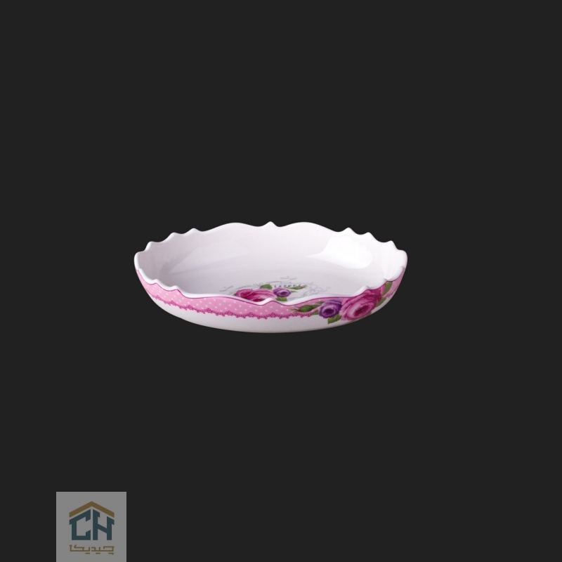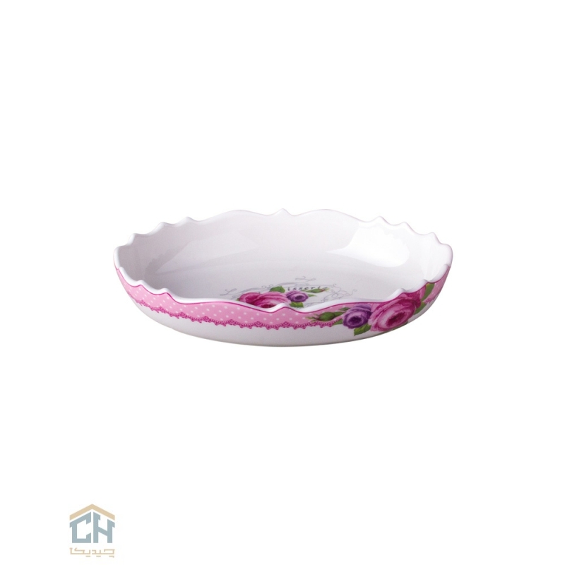 طرح Decal این محصول،مزین به نقوش دلنشین گلهای رز صورتی و بنفش است که با برگ های سبزشان،تضادی زیبا با زمینه سفید براق سرامیک ایجاد کرده اند.لبه های موج دار و چین دار این مرغ خوری بیضی که با نواری صورتی رنگ و خال خالی سفید تزئین شده اند،حسی از ظرافت و لوکس بودن را به ارمغان می آورد.این ترکیب رنگی شاداب و نقوش گلدار،تأثیری مثبت بر حال و هوای خانه شما خواهد گذاشت و فضایی پر از آرامش و زیبایی می آفریند.