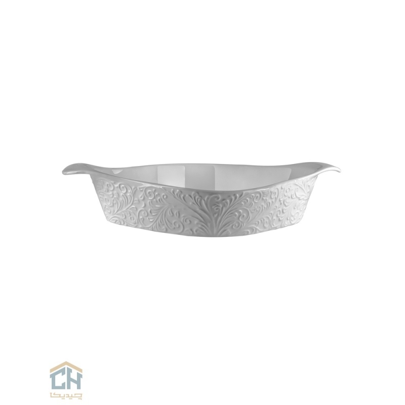 فرم خاص مرغ خوری لوزی با گوشه های کشیده و ظریف،طراحی این ظرف را از هر دیس دیگری متمایز می کند.این مرغ خوری کوچک با نقوش برجسته و پیچیده طرح رویال که بر بدنه درخشان از جنس سرامیک سفید آن حک شده،در زیر نور می درخشد و جلوه ای اشرافی به میز شما می بخشد.