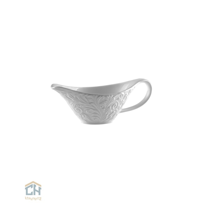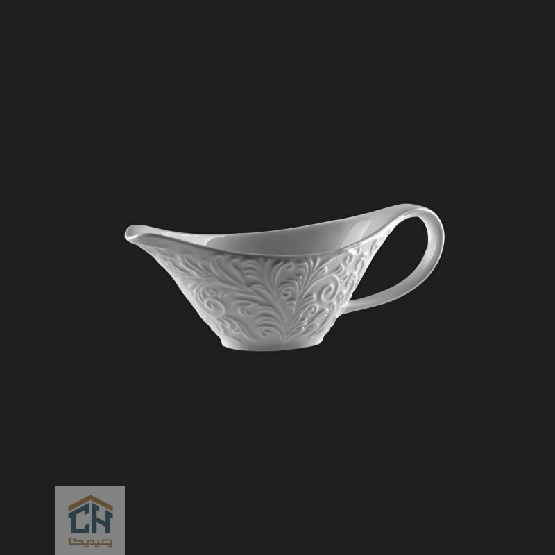 بدنه این ظرف سس خوری شیک با نقوش برجسته و پیچیده طرح رویال آراسته شده که بر روی سرامیک سفید و درخشان آن،جلوه ای خیره کننده دارد.طراحی ارگونومیک دسته و دهانه خوش فرم آن،ریختن سس را به کاری آسان و لذت بخش تبدیل می کند و از هرگونه ریزش ناخواسته جلوگیری می نماید.