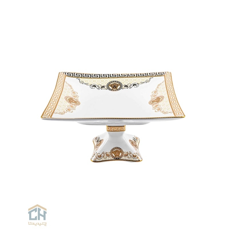 شیرینی خوری سرامیکی مربع کوچک گلدکیش طرح Versace مدل GK791800،یک تخت پادشاهی برای شیرینی های شما.