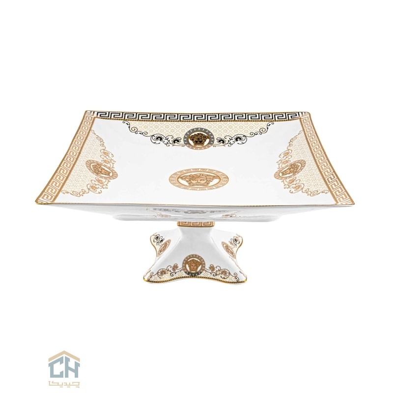 شیرینی خوری سرامیکی مربع بزرگ گلدکیش طرح Versace مدل GK791802،تاج با شکوه ضیافت های شما.