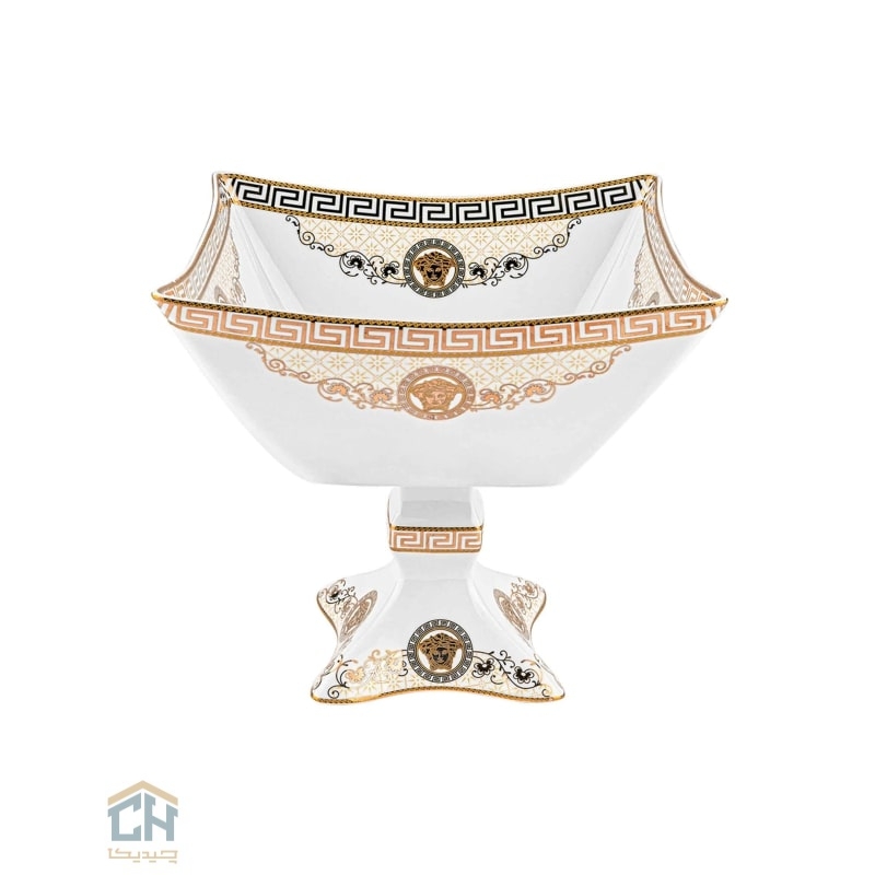 میوه خوری سرامیکی مربع بزرگ گلدکیش طرح Versace مدل GK791804،یک اثر هنری برای ضیافت های سلطنتی شما.