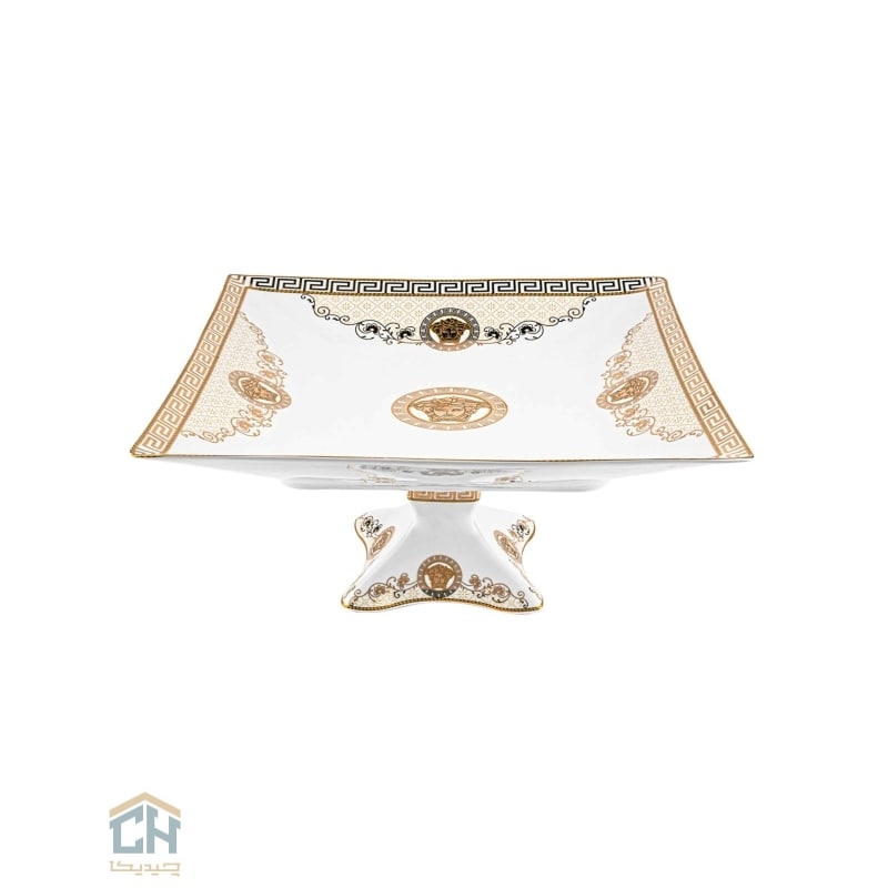 شیرینی خوری سرامیکی مربع متوسط گلدکیش طرح Versace مدل GK791801،توازنی از شکوه و سخاوت بر میز شما.