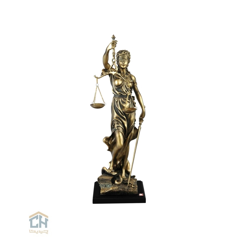 این تندیس عدالت زیبا،با نمایش دقیق بانوی عدالت،ترازوی سنجش حق و شمشیر اقتدار،پیامی عمیق را در خود جای داده است.همانطور که در تصویر مشخص است،این مجسمه گلدکیش یک اکسسوری دکوری خاص است که می تواند نقطه کانونی دیزاین شما باشد و به هر فضایی،از یک دفتر وکالت مدرن گرفته تا یک کتابخانه خانگی دنج،عمق و شخصیت ببخشد.