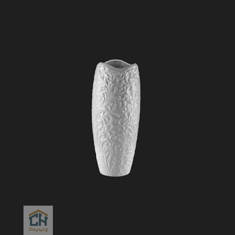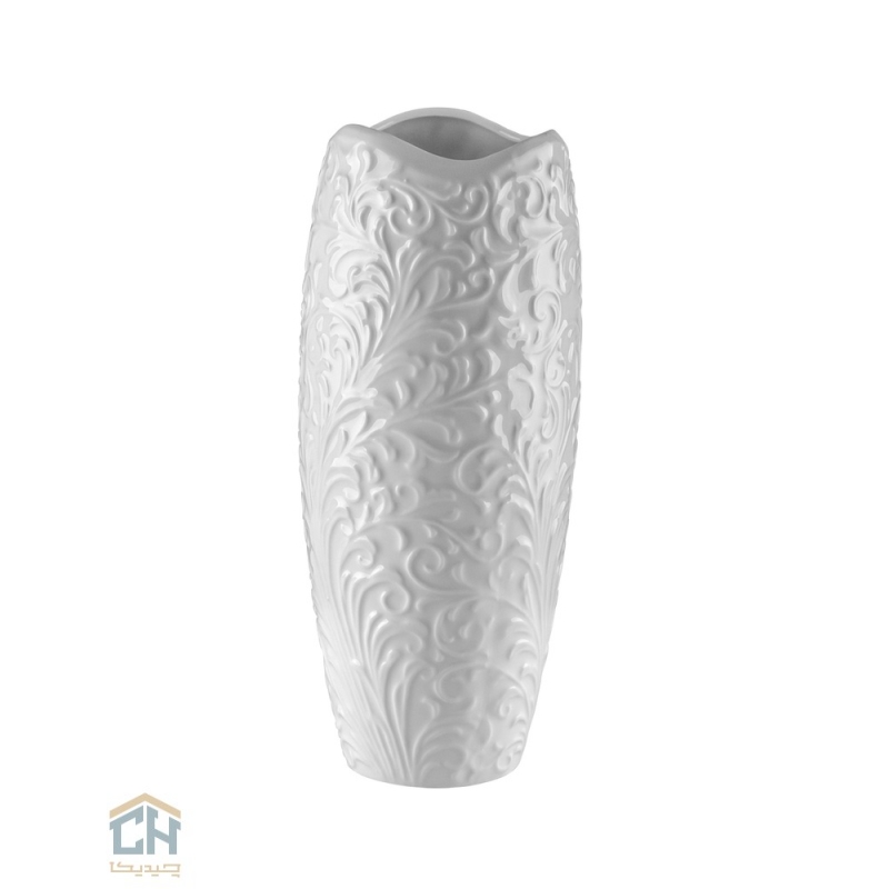 تمام بدنه این گلدان بزرگ با نقوش برجسته و پیچیده طرح رویال تزئین شده است که بر روی سرامیک سفید و درخشان آن،رقصی از نور و سایه را به نمایش می گذارد.این گلدان دکوری کلاسیک چه با شاخه های گل طبیعی یا مصنوعی و چه به تنهایی،یک نقطه کانونی خیره کننده در دکوراسیون شما خواهد بود.