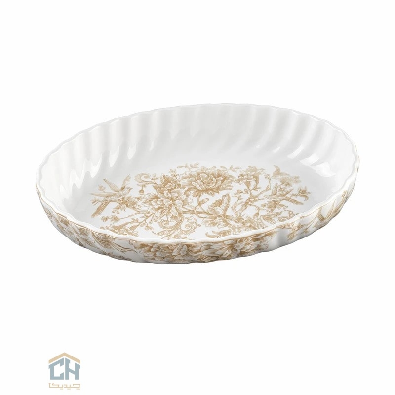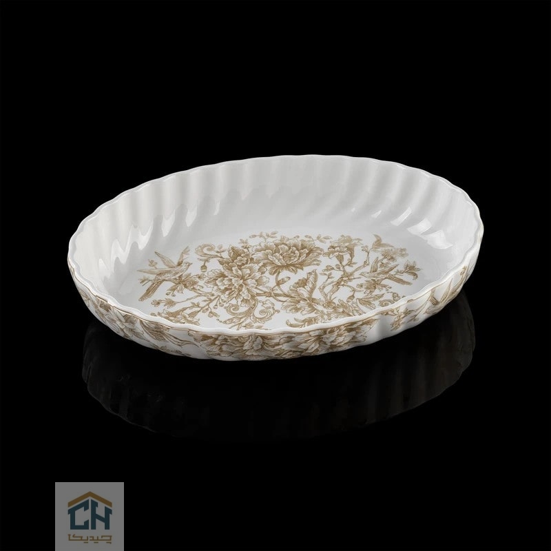 مرغ خوری چینی بیضی متوسط گلدکیش طرح سارینا؛مناسب سرو مرغ و خورشت با طراحی زیبا،جنس مرغوب و کیفیت بالا