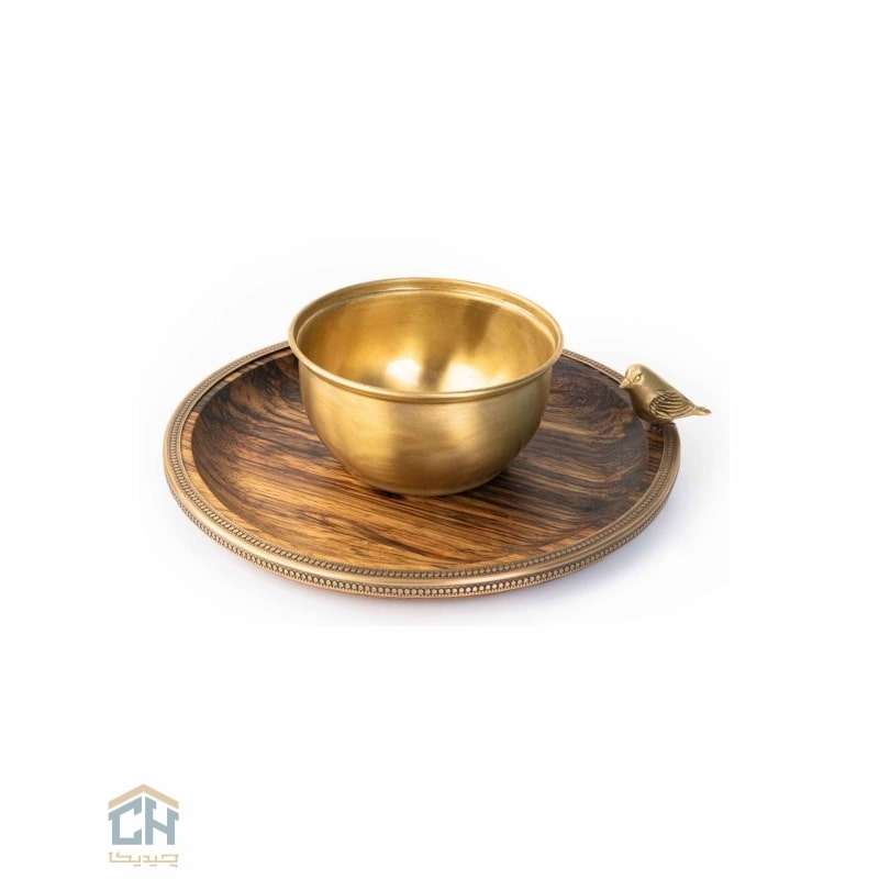 ست پیاله و پیش دستی چوب و برنج گلدکیش مدل GK829504 با طراحی پرنده.مناسب سرو میوه،آجیل و تنقلات.قابل شستشو با دست.