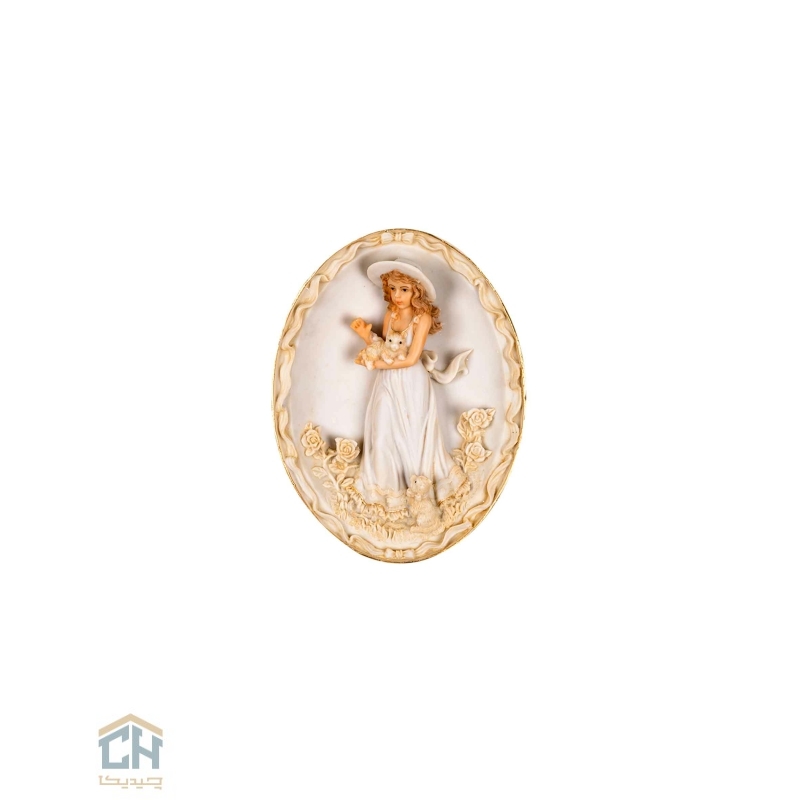 یک تابلو برجسته هنرمندانه می ‌تواند،به دیوار شما شخصیتی رمانتیک و دلنشین ببخشد.این اثر هنری با ظرافتی مثال ‌زدنی،لحظه‌ ای سرشار از معصومیت را به تصویر می ‌کشد:دختری زیبا با کلاهی کلاسیک که گربه ‌ای کوچک را با مهربانی در آغوش گرفته و در میان غنچه‌ های رز غرق در آرامش است.