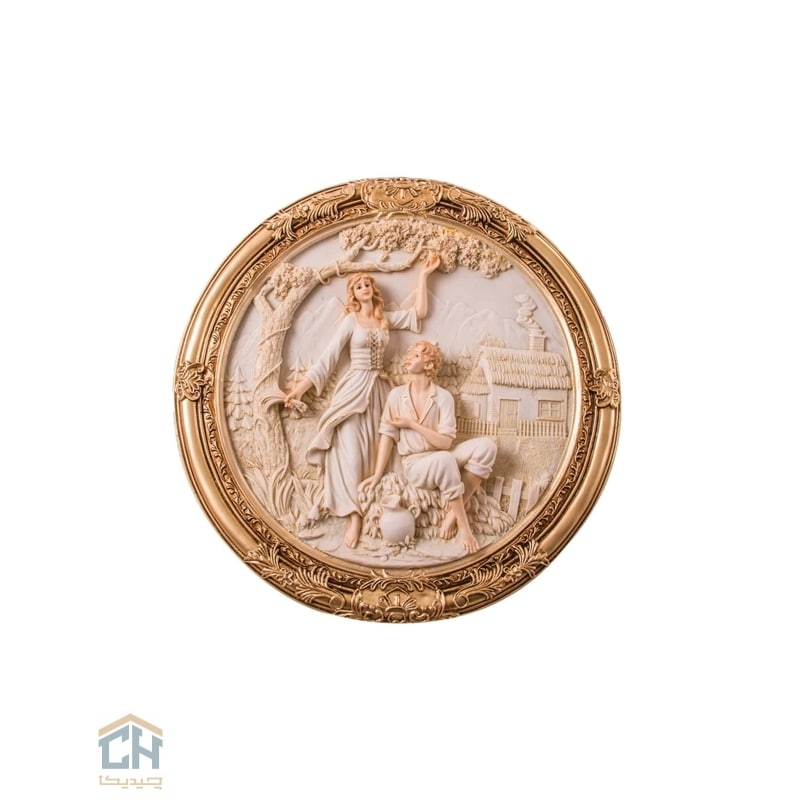 این تابلو کوچک که از پلی رزین درجه یک ساخته شده،صحنه ای برجسته و سه بعدی را با جزئیاتی حیرت انگیز به تصویر می کشد.در این قاب هنرمندانه،زوجی عاشق در زیر سایه درختی کهن،لحظه ای سرشار از آرامش را سپری می کنند.این دیوارکوب پلی رزین با قاب طلایی کلاسیک و رنگ بندی کرم،حسی از گرما و صمیمیت را به فضا می بخشد.