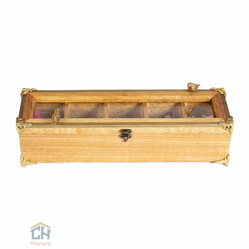 جعبه پذیرایی چوب و برنج گلدکیش مدل GK829651.مناسب چای،دمنوش و تنقلات.5 خانه مجزا.قابل شستشو با دست.