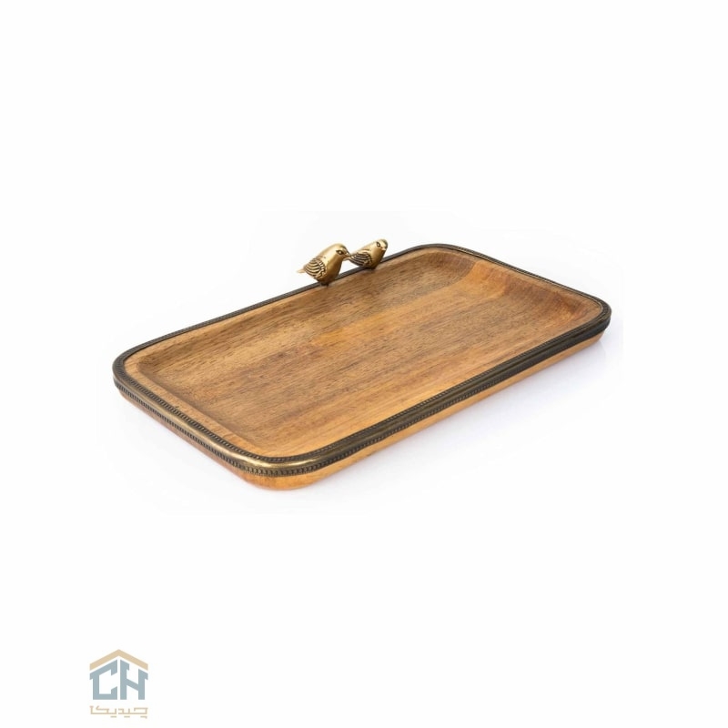 این سینی چوبی کوچک،علاوه بر کاربردی بودن برای سرو نوشیدنی،شیرینی و دیگر تنقلات،به عنوان یک عنصر دکوری زیبا نیز تأثیری مثبت بر فضا یا حال و هوای خانه می گذارد.حضور دو پرنده برنجی ظریف بر روی لبه سینی،طرح پرنده را تکمیل کرده و حس آرامش و طبیعت دوستی را به ارمغان می آورد.