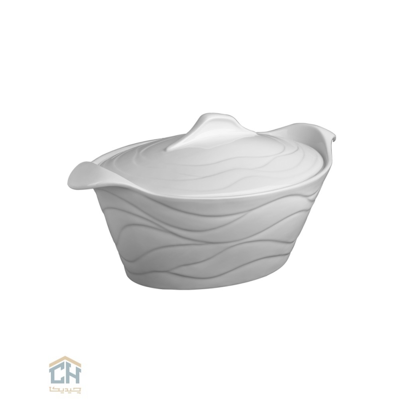 این قابلمه متوسط که توسط برند خوش نام گلدکیش ارائه شده،از سرامیک سفید با کیفیت ساخته شده که درخشندگی و ثبات رنگ آن در طولانی مدت تضمین شده است.فرم قابلمه بیضی شکل،همراه با خطوط ظریف و برجستهی طرح موج بر روی بدنه،حسی از پویایی و آرامش را به طور همزمان القا می کند و نگاه ها را به مرکز میز شما معطوف می سازد.