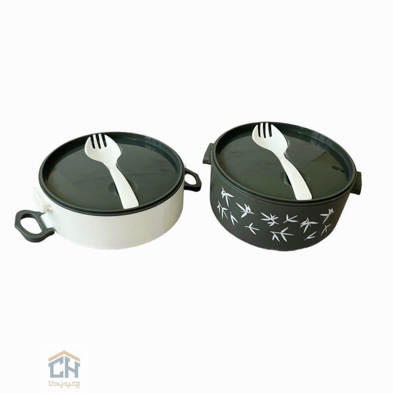 این ظرف دارای ۲ طبقه مجزا با درب قفل شو هست که از نشت مواد غذایی جلوگیری می کنه.بهعلاوه،۲ عدد چنگال خوش دست هم همراهشه تا همه چی مرتب و آماده استفاده باشه.جنسش از پلاستیک PP با کیفیت ساخته شده،پس هم قابل استفاده در ماکروفره و هم قابل شستشو با دست و ماشین ظرفشویی.