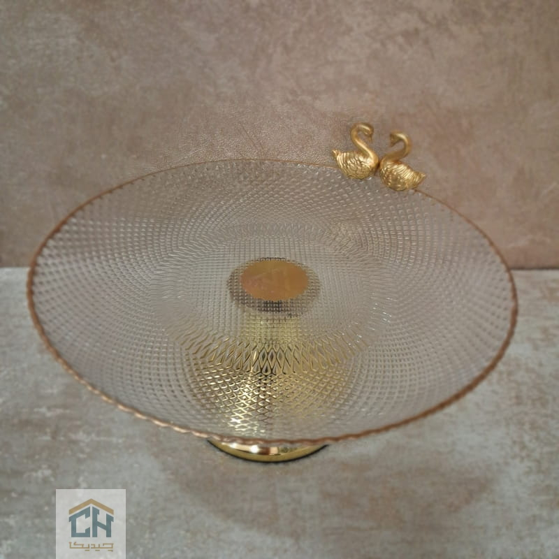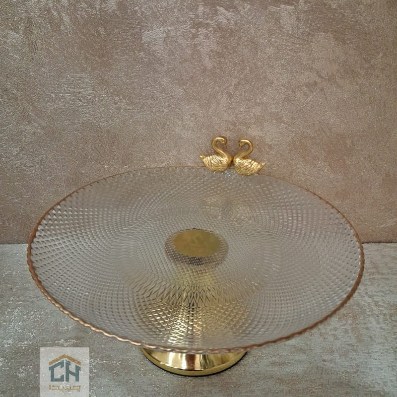 در طراحی این مدل شیرینی خوری جدید،توجه به جزئیات موج می ‌زند.وجود دو مجسمه ظریف قو در کنار لبه‌ های آبکاری شده،هویتی لوکس به آن بخشیده است.همچنین کیفیت ساخت بالا در این شیرینی خوری پایه طلایی،خیال شما را از بابت ثبات رنگ و دوام در برابر شستشو راحت می ‌کند.این ظرف زیبا،همان قطعه ‌ای است که امضای شخصی شما را به میزبانی ‌تان اضافه می ‌کند.