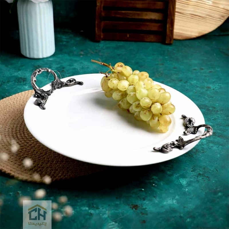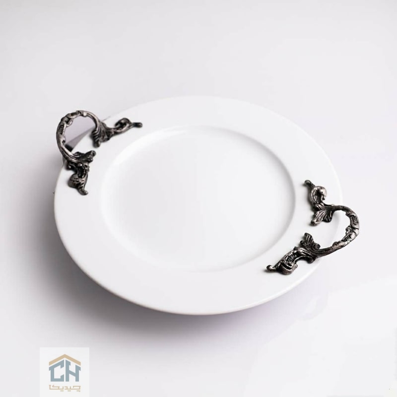 دیس چینی گرد دسته پیوتر با فرم دایره ای و موزون خود،انرژی و صمیمیت را در مرکز میز شما به جریان می اندازد.این محصول با تلفیق سفیدی درخشان چینی و نقش و نگارهای هنرمندانه فلز پیوتر،تعادلی بی نظیر میان سنت و مدرنیته برقرار کرده است.دسته های خوش فرم و ارگونومیک در دو طرف ظرف،علاوه بر زیبایی بصری خیره کننده،جابجایی آن را هنگام پذیرایی بسیار آسان کرده اند تا شما با اعتماد به نفس کامل از مهمانانتان استقبال کنید.
