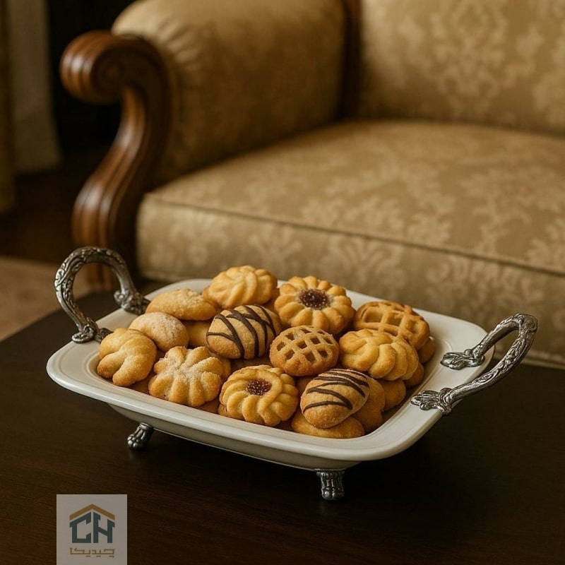با ابعاد ۲۰ در ۲۰ سانتی متر،این دیس شیرینی کوچک سفید فضای کافی برای چیدمان انواع کوکی،شیرینی های خشک و بیسکویت را در اختیار شما قرار می دهد بدون آنکه فضای میز را اشغال کند.ارتفاع ۷ سانتی متری آن که حاصل سه پایه ظریف و خوش تراش در زیر ظرف است،باعث می شود تا این ظرف سرو بیسکویت دسته دار با پرستیژ خاصی روی میز خودنمایی کند.