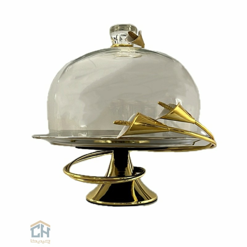 با کیک خوری درب دار استیل و برنج،کیک و شیرینی خود را به اثری هنری تبدیل کنید.درپوش شیشه ای برای حفظ تازگی و طراحی لوکس برای میزبانی های خاص شما.